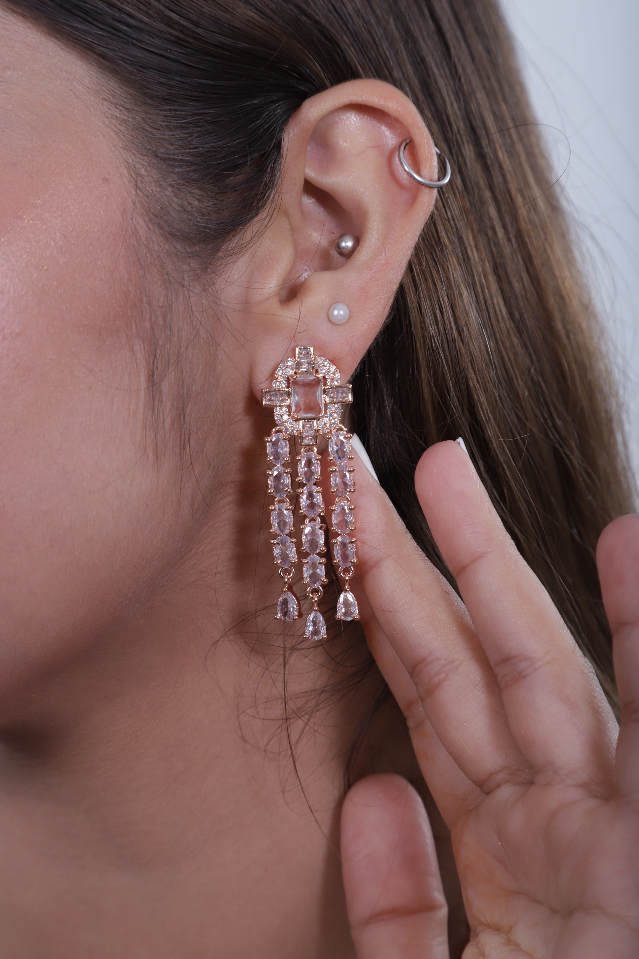 Luxurious Design: The set features a delicate rose gold finish, perfectly complementing the brilliance of the American diamonds. The intricate design exudes grace and elegance, making it a versatile accessory for both traditional and contemporary outfits.