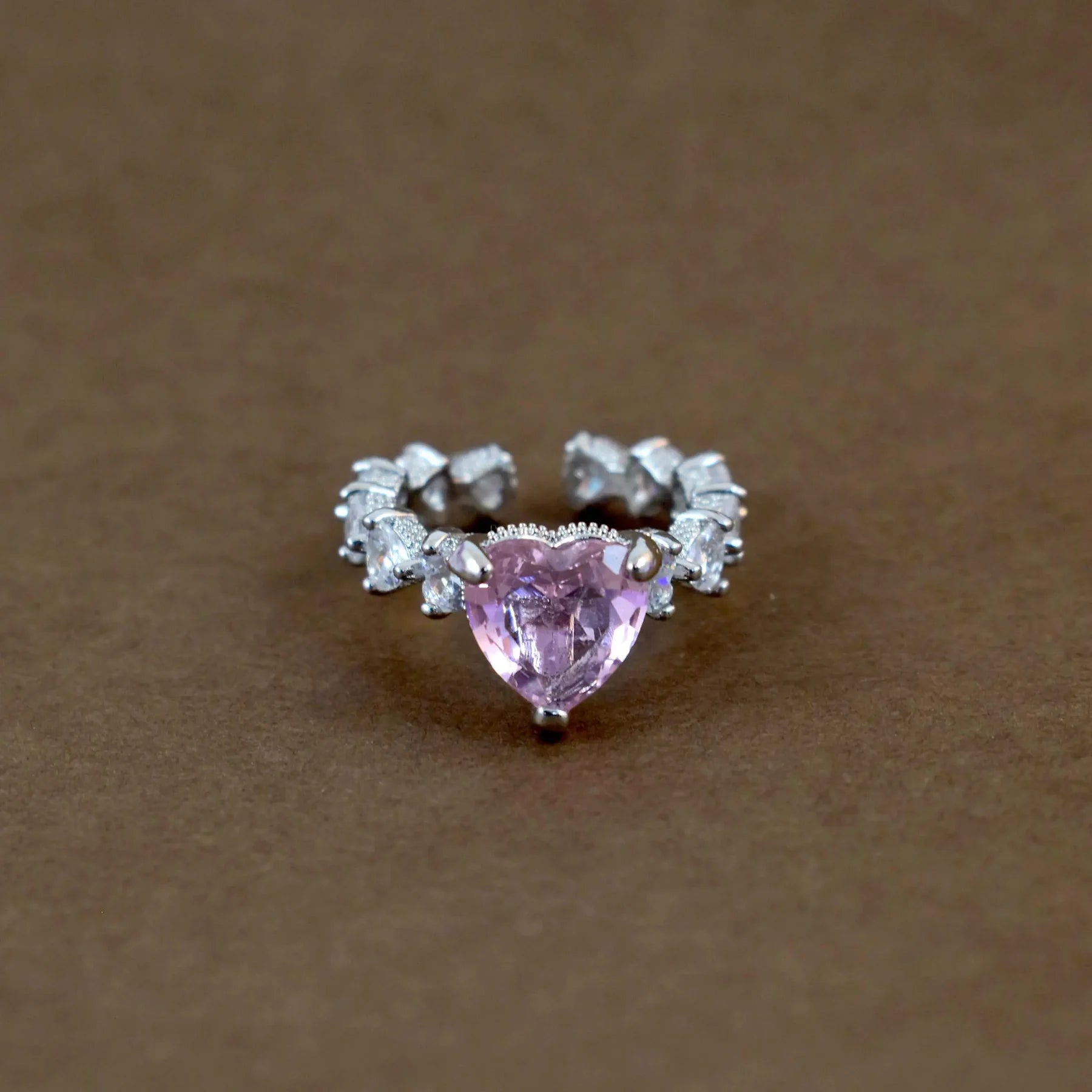 Heart diamond ring I Pink heart cocktail ring Adjustable
